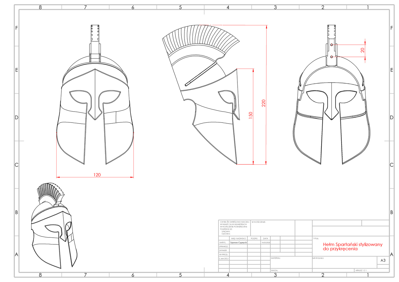 Hełm inspirowany starożytnością: interpretacja historycznej formy o wyrazistym charakterze;